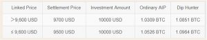 Users can buy BTC at a price that is lower than the linked price or market price when a product expires. Previously, users could only make BTC purchased at the current market price, but with Dip Hunter, users now have the opportunity to potentially purchase at 5% below the market price. Please see the example as an illustration.
