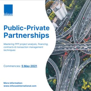 Infocus International Group has launched the Public-Private Partnerships online course and it will be commencing live on 5th May 2021. Throughout the eight sessions, you will be mastering PPP project analysis, financing, contracts & transaction management techniques.